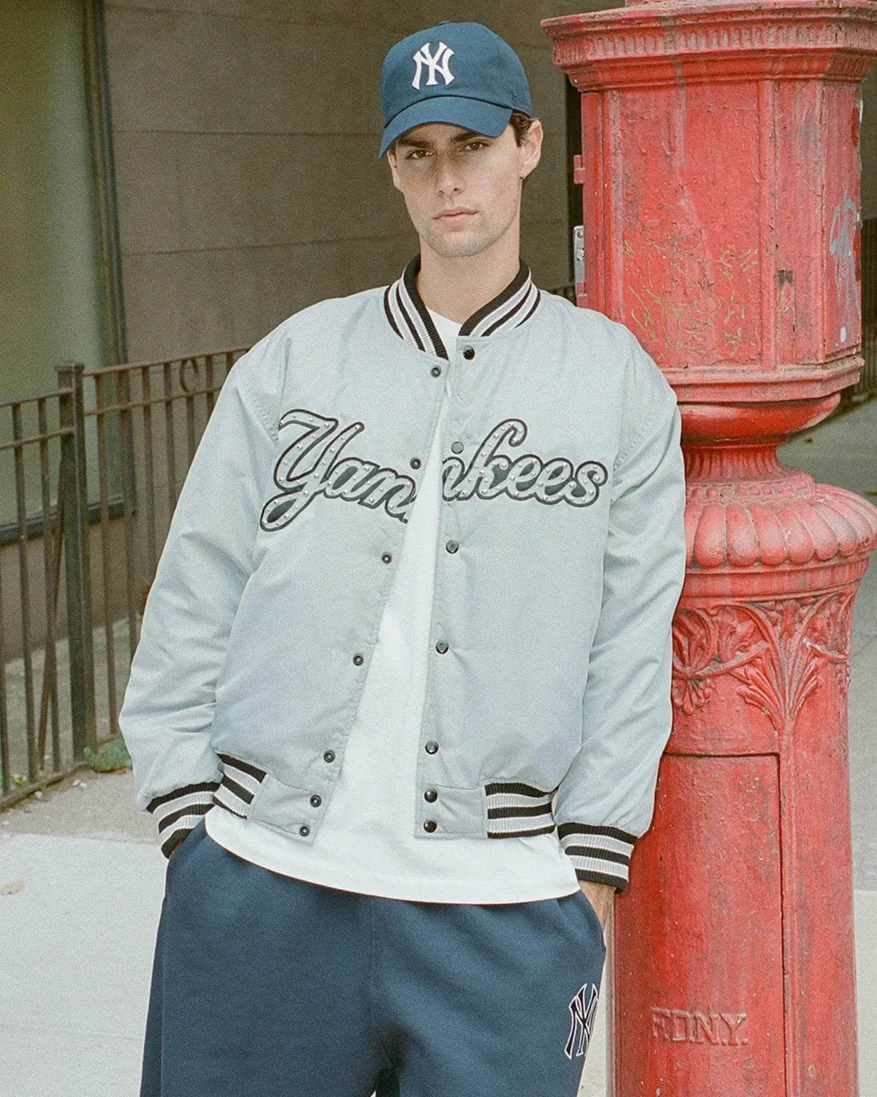 Grey Madhappy Yankees Down Baseball Jacket